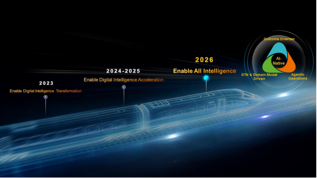 Supporting the shift to mobile AI era, Huawei introduced the industry-first AI-Native framework for intelligent operations developed with global operators and a new generation of intelligent solutions. The framework consists of three core elements: Outcome Oriented, DTN and Domain Model Driven, and Agentic Operations. By building digital twins and domain models for the telecom industry, the intelligent solutions address challenges that were unsolvable through traditional methods and enable efficient synergy between human experts and digital employees. This approach establishes new paradigms to unleash AI-driven “New Quality Productive Forces” and achieve a leap in all intelligence.